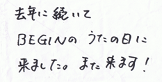 最終更新日 2008.06.30 毎年、沖縄で開催される「うたの日カーニバル」と言うお祭り?で、BEGIN♪のライブを見に先日来沖をされたお客様です。m(*^〇^*)mこの日の翌日はお友達と合流して皆で楽しんだ様です。!…