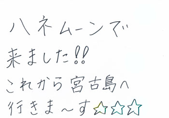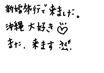 最終更新日 2013.04.26 ハネム~ン♥♥で沖縄へいらした新婚さん!!岐阜県からお越しですヾ(*´∀`*)ノ♪『アラサーですよ~』と恥ずかしそうに言ってましたが(笑)とても爽やかで!最初は学…