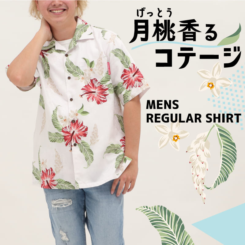 ジャガード織で模様が入った高級感溢れるかりゆしウェア『月桃香るコテージ』