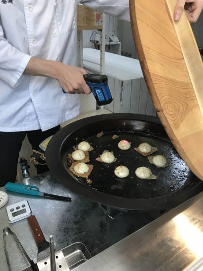 写真は、熱々の肉汁が入っているので、一つ一つその温度も確認しています。
