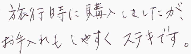 旅行時に購入しましたが、お手入れもしやすくステキです。