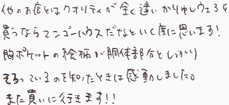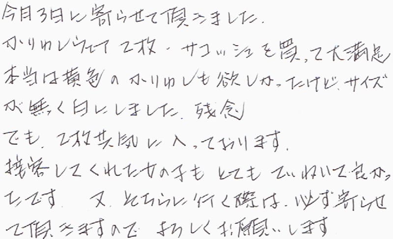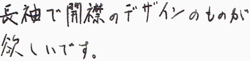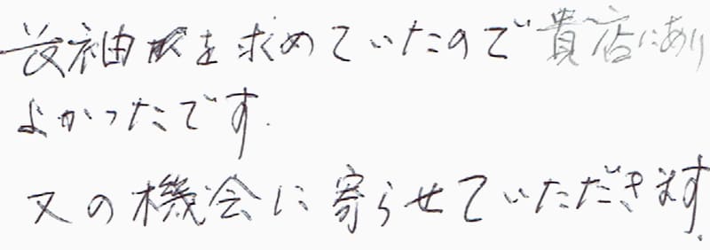 長袖を求めていたので貴店にありよかったです。又の機会に寄らせていただきます。
