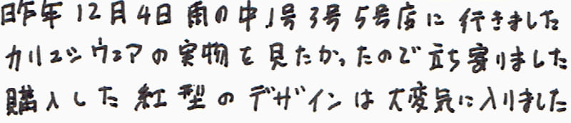 昨年12月4日雨の中1号3号5号店に行きました。カリユシウェアの実物を見たかったので立ち寄りました。購入した紅型のデザインは大変気に入りました。