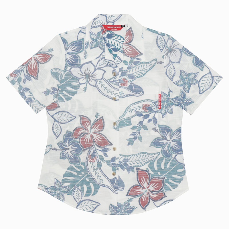 彩りをアクセントに楽しめるレディース沖縄アロハシャツ(かりゆしウェア)