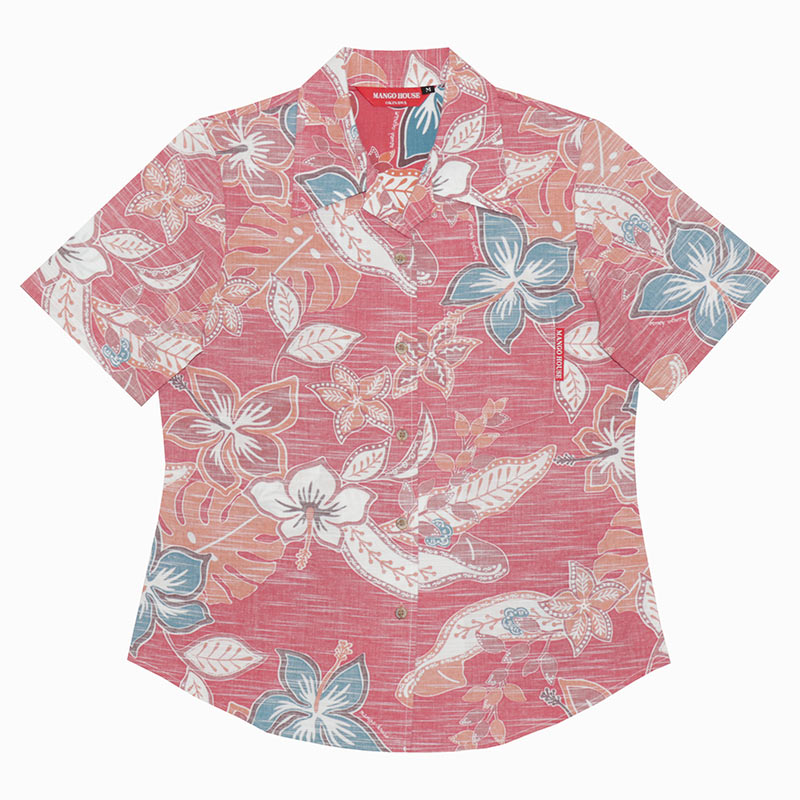 彩りをアクセントに楽しめるレディース沖縄アロハシャツ(かりゆしウェア) レッド 彩りをアクセントに楽しめるレディース沖縄アロハシャツ(かりゆしウェア) レッド 彩りをアクセントに楽しめるレディース沖縄アロハシャツ(かりゆしウェア) レッド