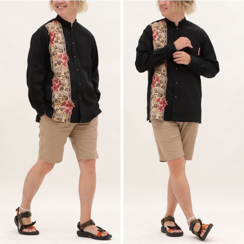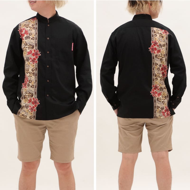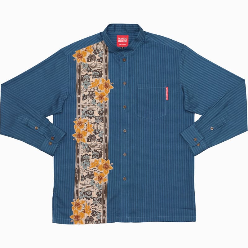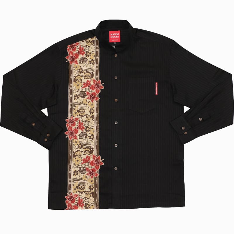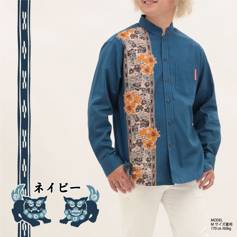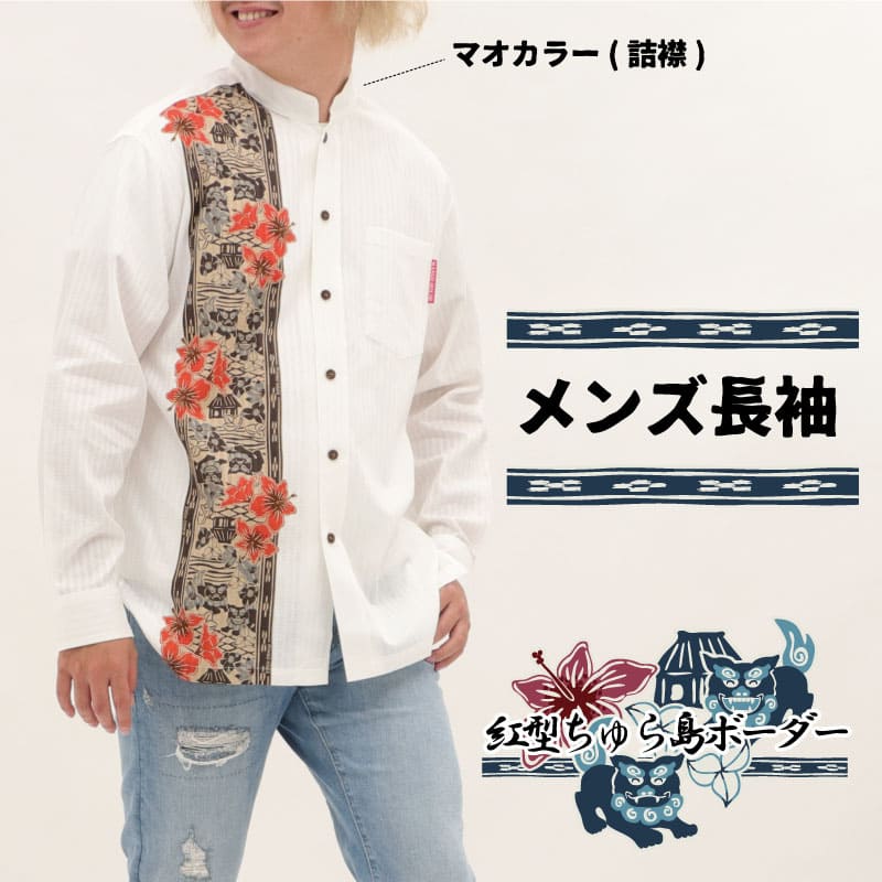 完売商品 長袖シャツ 紅型美ら島ボーダー (マオカラー) メンズ