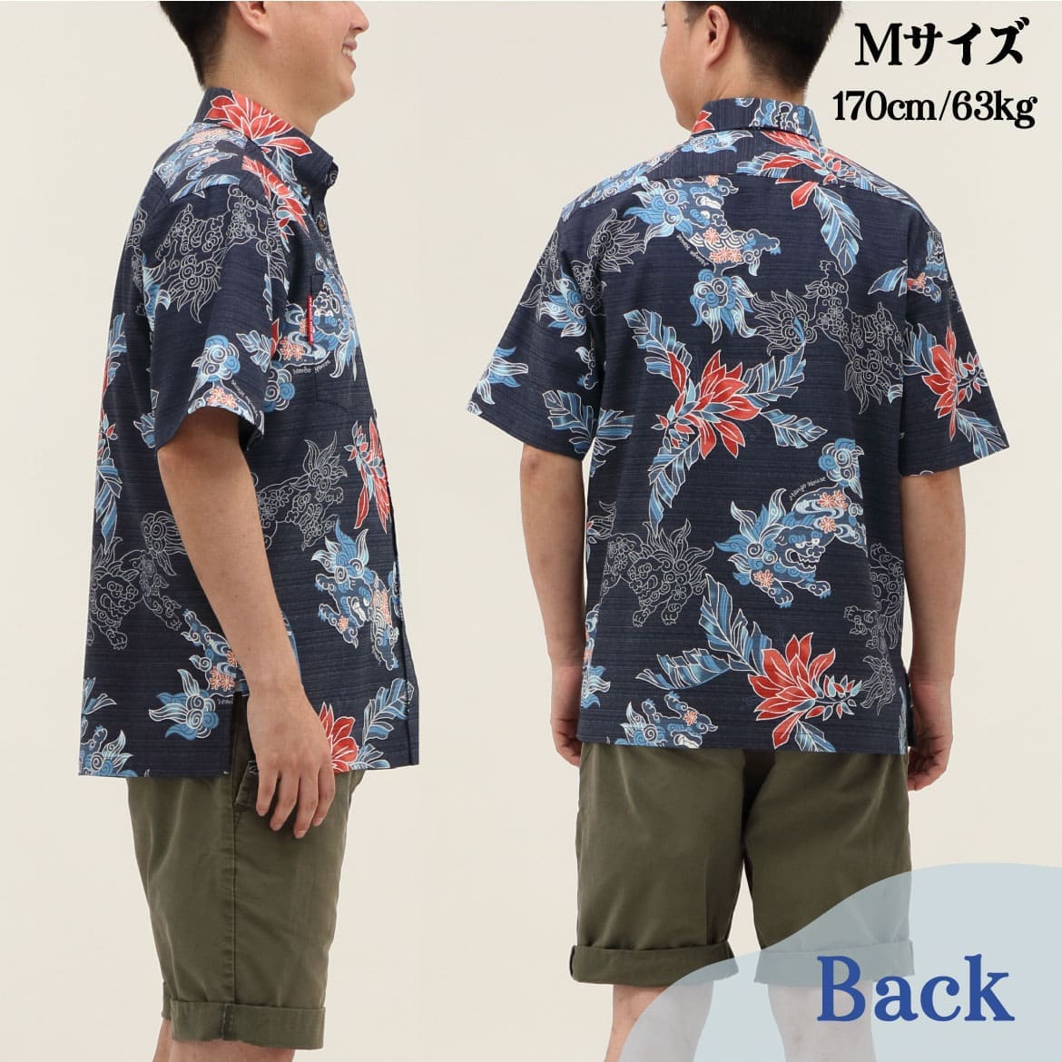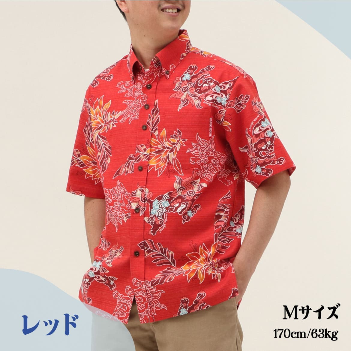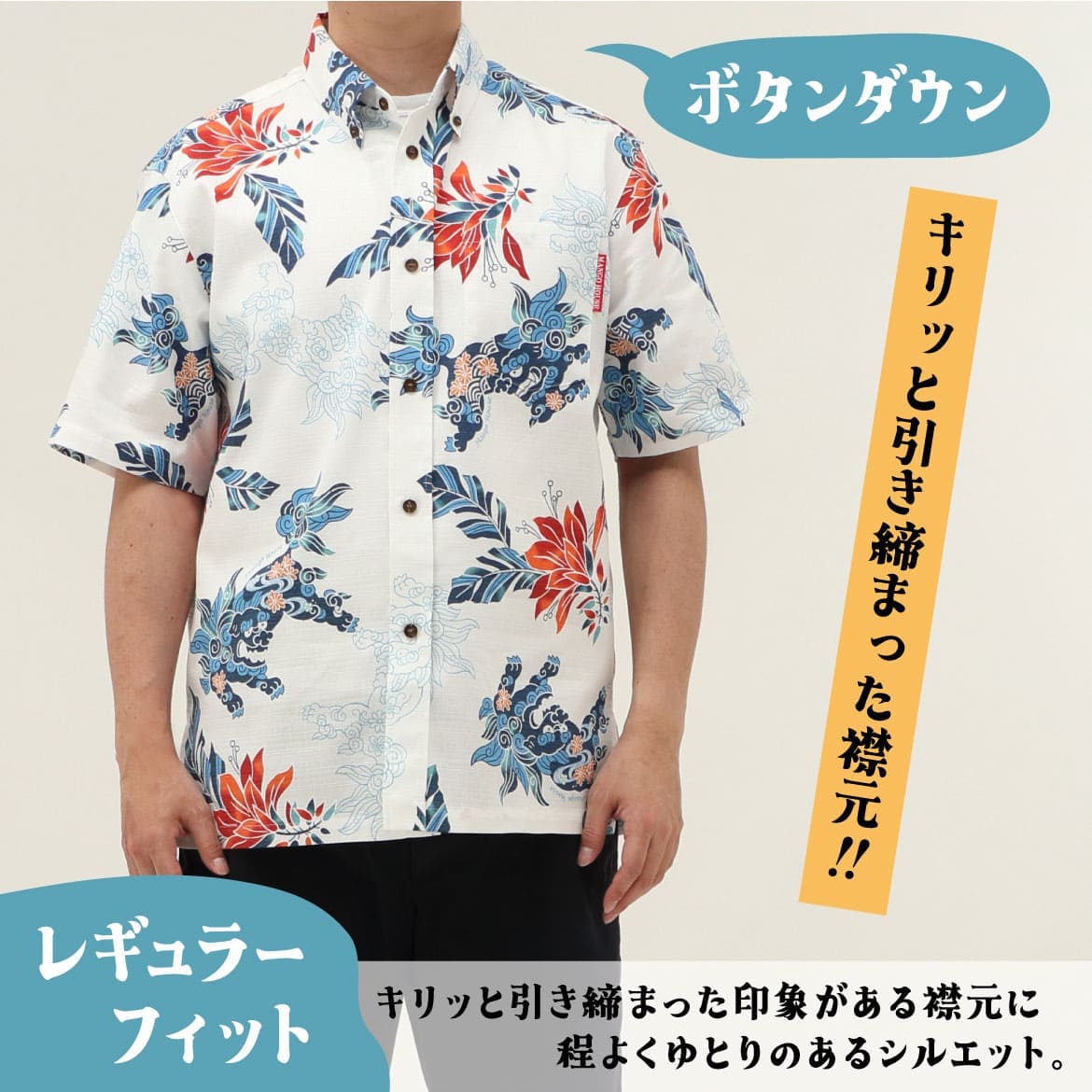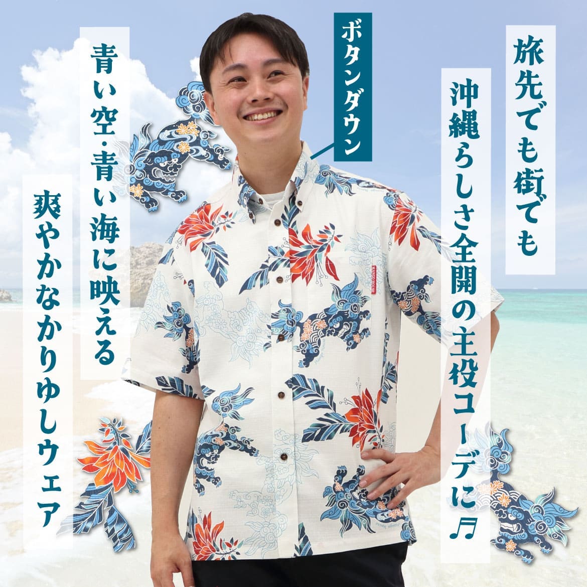 サイズ:S.M.L.LL.3L.4L.5L 252077 寿ゆいまーるシーサー(ボタンダウン) メンズ