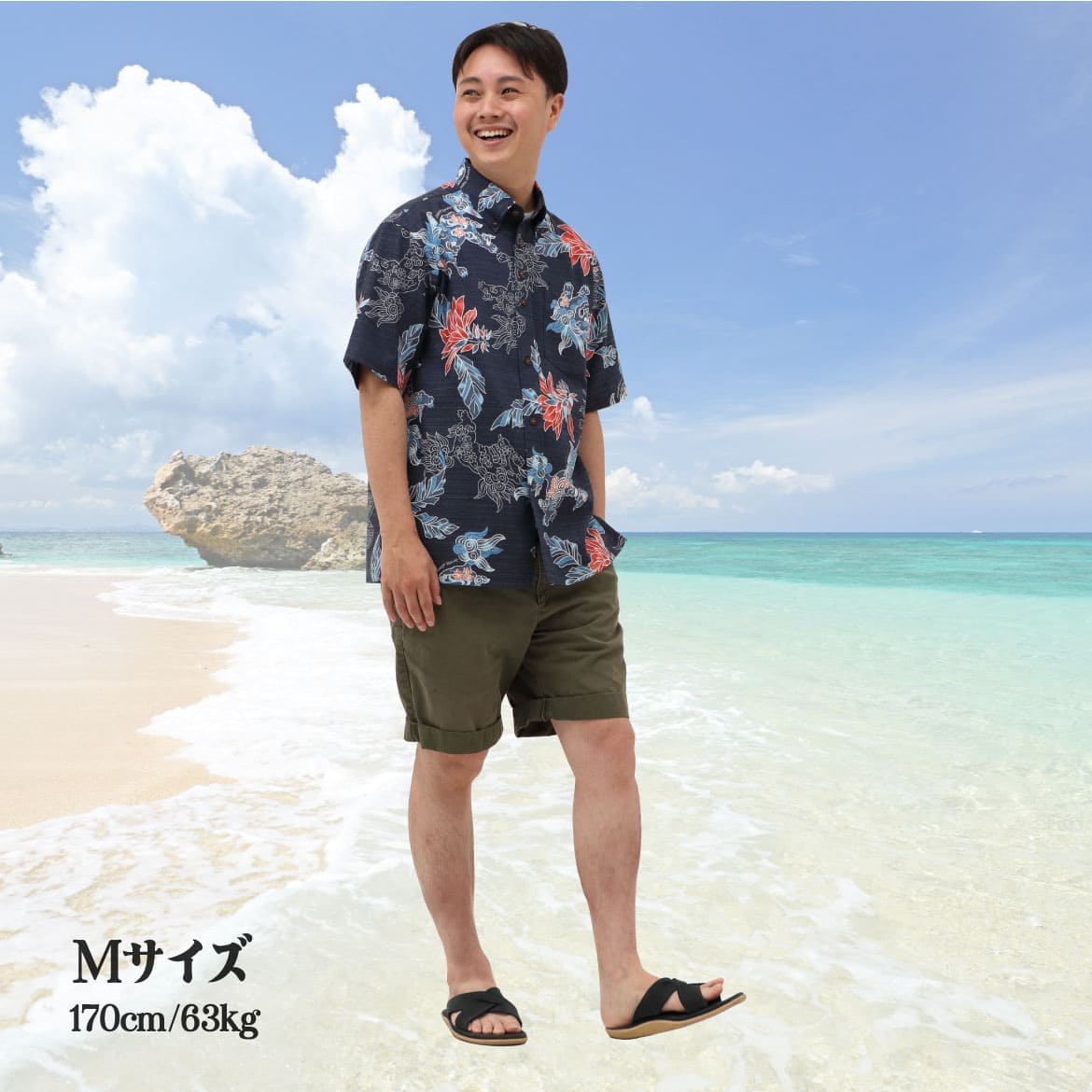 沖縄アロハシャツ メンズ170cm60kg かりゆしウェア