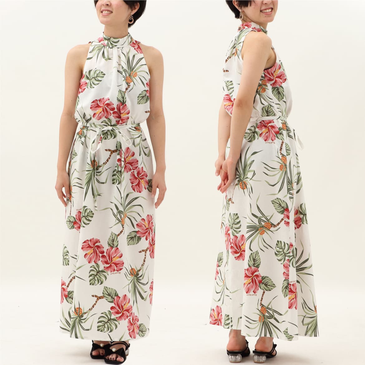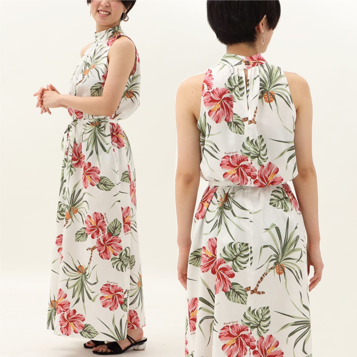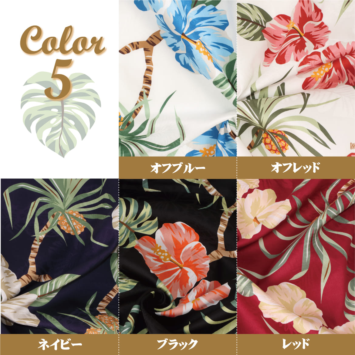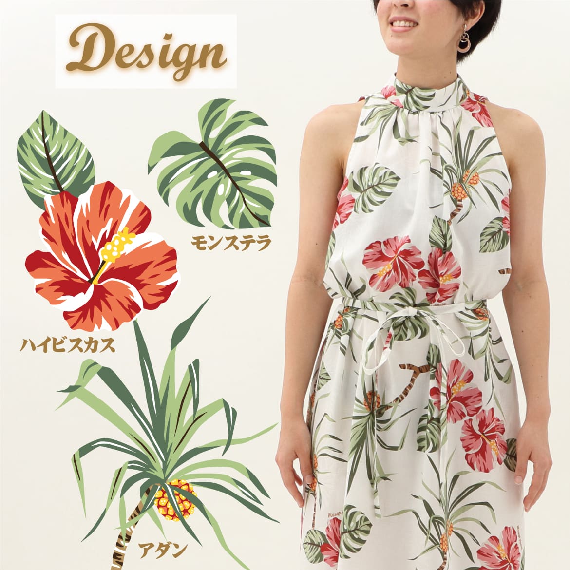 白地にレッドのハイビスカスが華やかで温かみのあるカラー
