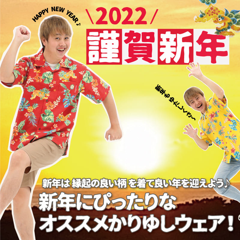 新年 あけましておめでとうございます♪新しい年、縁起の良い柄を着て気持ちも新しくスタートしてみませんか?新年にピッタリなオススメかりゆしウェアのご紹介です!