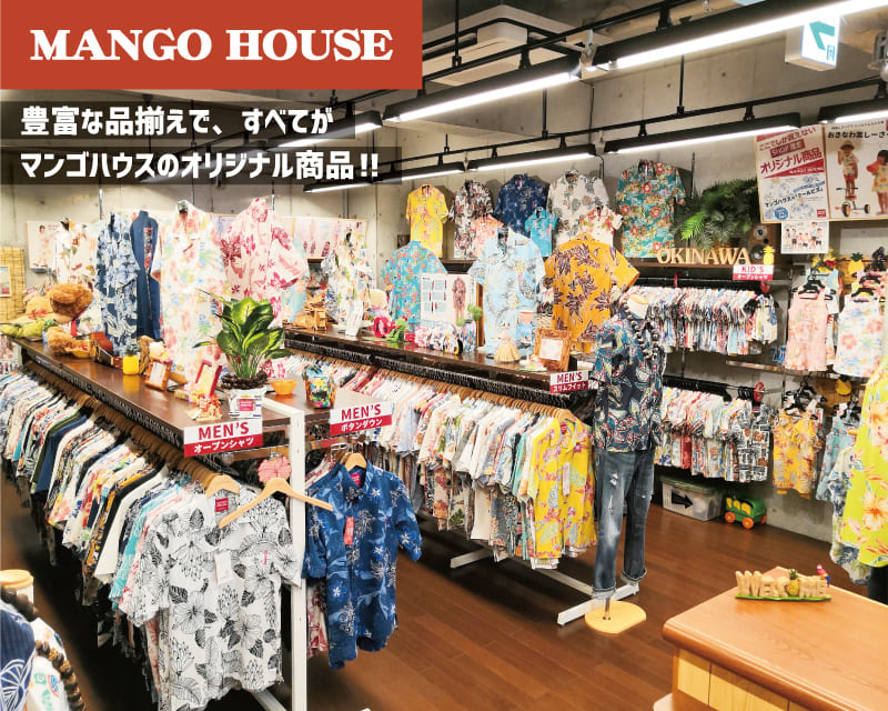 ぼくのおすすめが「マンゴハウス」。商品のラインナップが豊富で、すべてがショップのオリジナルデザインばかりなんだ!沖縄県内に7店舗あるショップだから通信販売でも安心してショッピングOK。