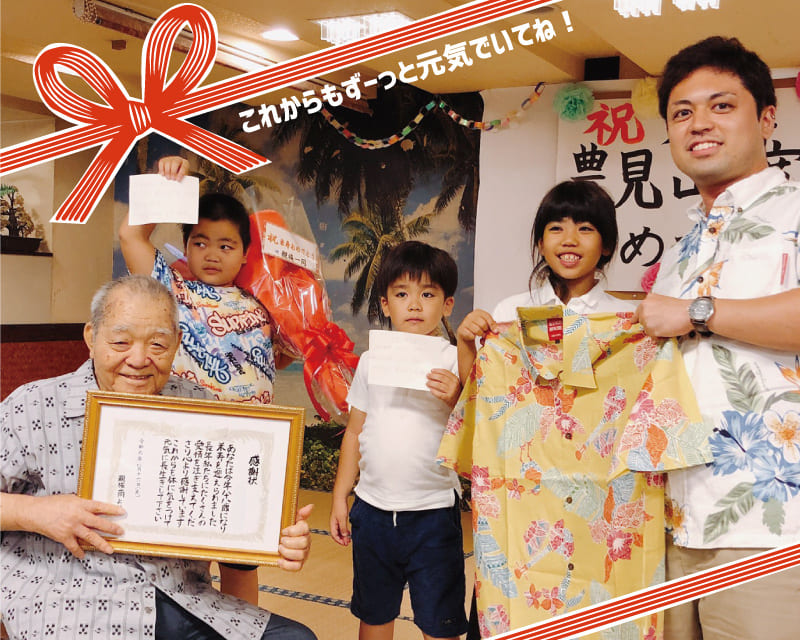 家族みんながそろい、久しぶりに会ったおじいちゃんはとても嬉しそうでした。さらに、孫一同からプレゼントを渡すと今日一番の笑顔で 大喜びしてくれて、みんなが幸せになった「敬老の日」でした♪