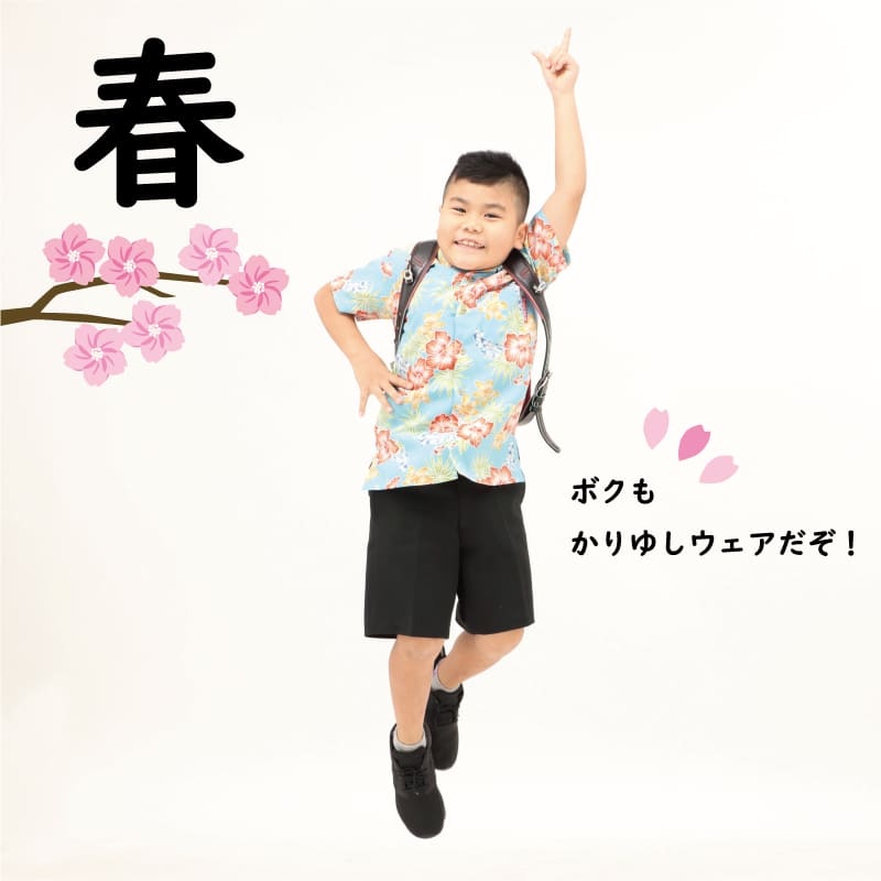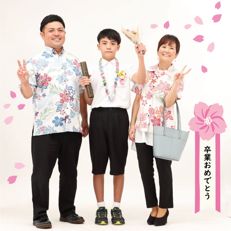 いつもお仕事でかりゆしウェアを着ている、お父さん、お母さん、でも、春の門出には新鮮な気持ちで「かりゆしウェア」を選ばれるご家族が今増えています!沖縄スタイルの春をご紹介いたします。