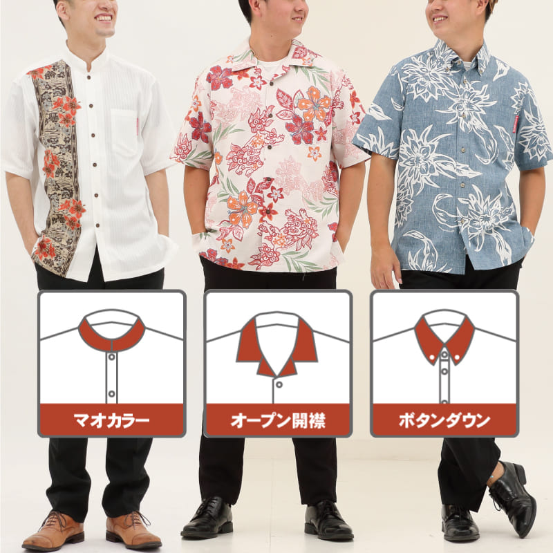 お父さん、襟元でいろいろ種類があるんですよ!暑い日を快適に過ごすならオープン開襟がおすすめですが、式服としてご準備するのでしたらボタンダウンタイプが人気があります。決まりはございませんが、ボタンダウンタイプだと畏まった雰囲気があると選ばれる方が多いです。