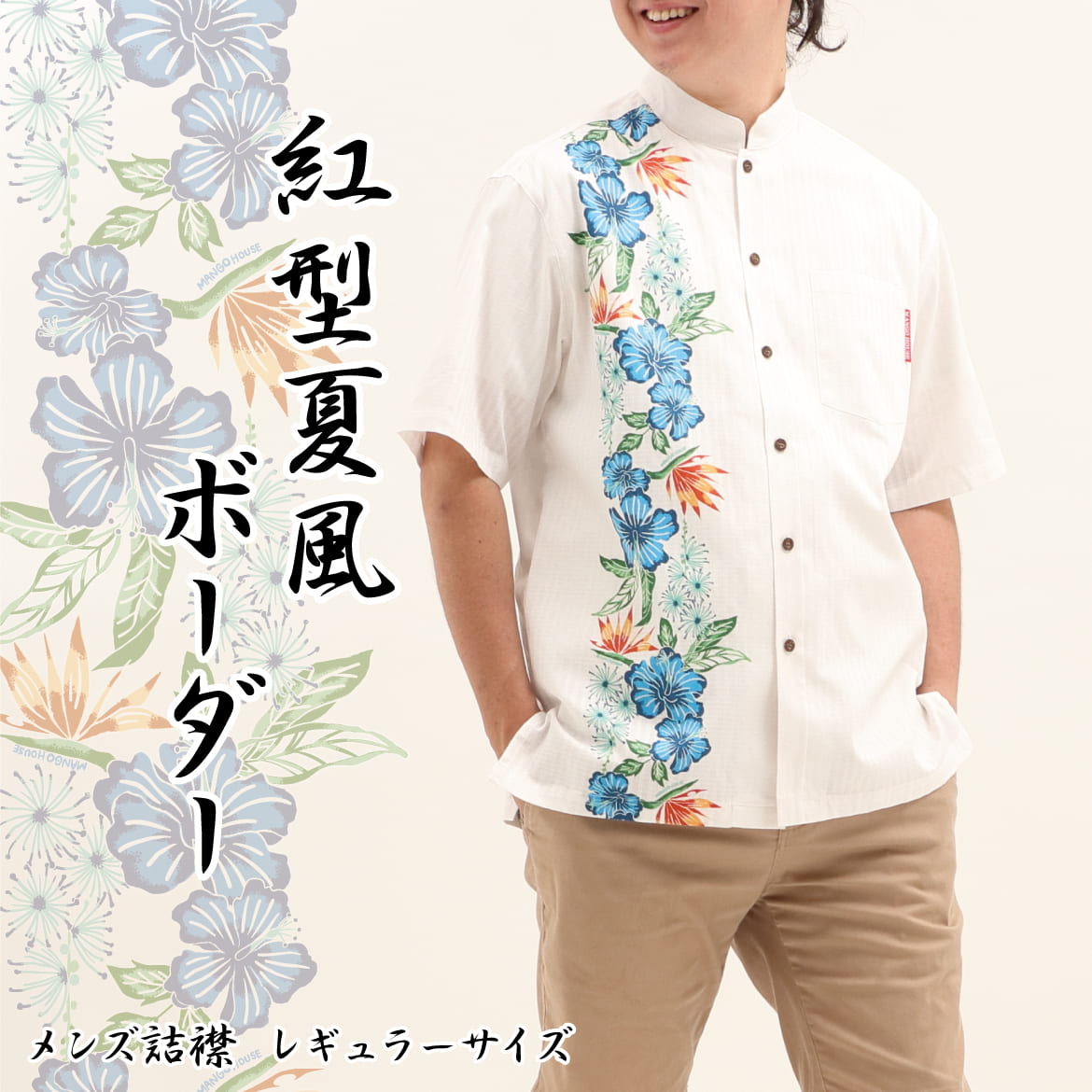 完売商品 232057 紅型夏風ボーダー(マオカラー) メンズ