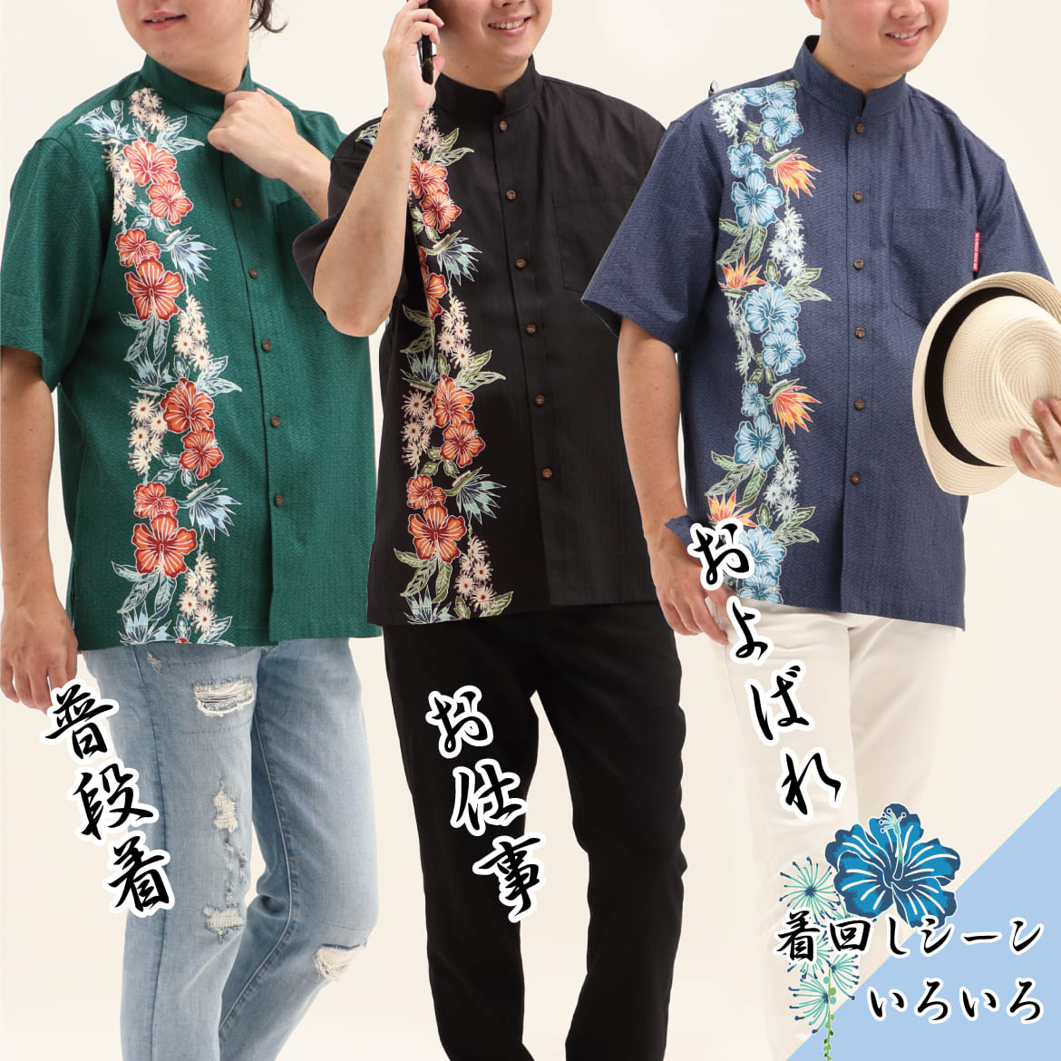 派手すぎない柄は、普段使いやクールビズ、結婚式など、どんなシーンでも着やすい!1着は持っていたい万能かりゆしウェア。