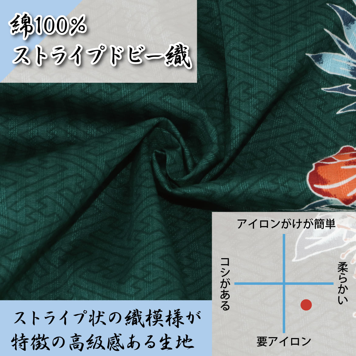 生地は、綿100%でストライプ状の織模様が特徴のストライプドビー織。織模様があることで光沢を放ち高級感がうまれます。綿なのでやわらかい手触りで、通気性や着心地も抜群。