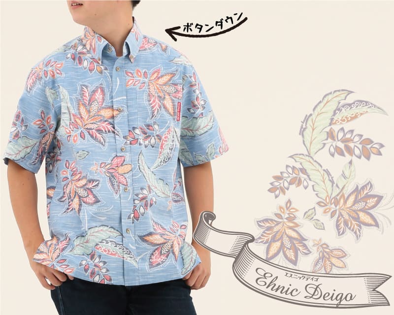完売商品 182023 エスニックデイゴ(ボタンダウン) メンズ