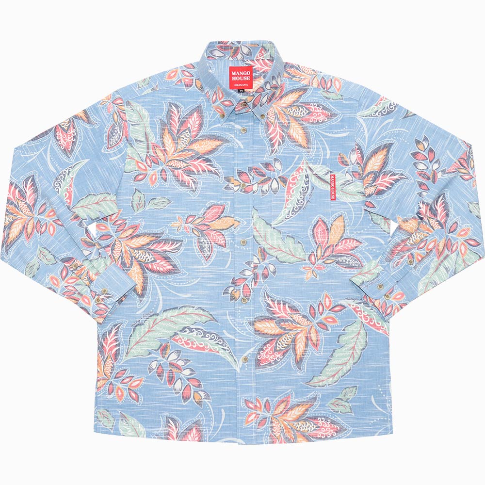 沖縄アロハシャツ メンズ長袖 かりゆしウェア ライトブルーライトブルー