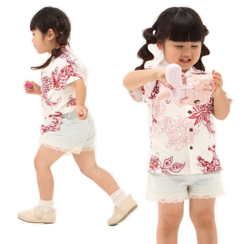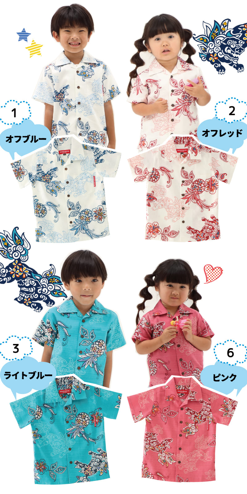 サイズ:90cm〜150cm キッズシャツ いちゃりばシーサーパイン