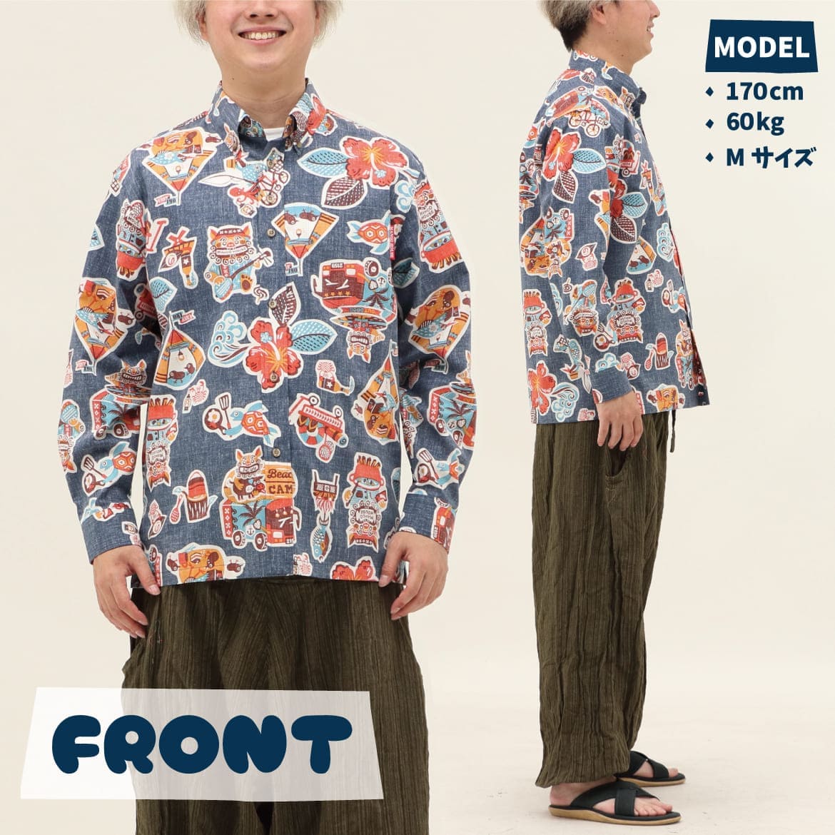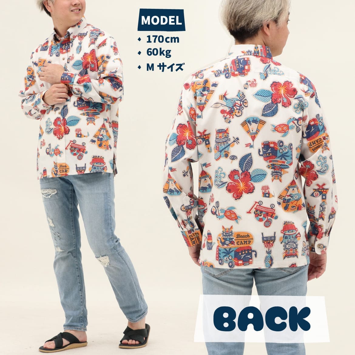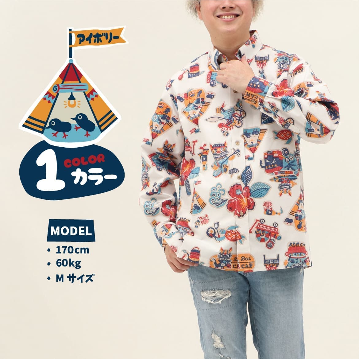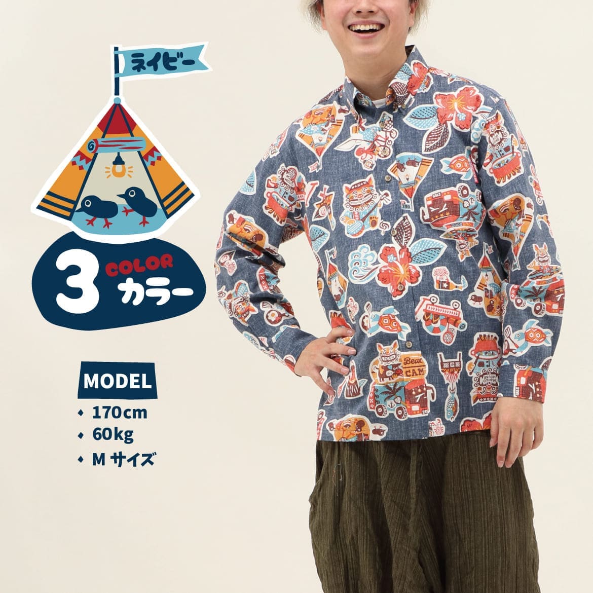 サイズ:S.M.L.LL 長袖シャツ キャンピングシーサー(ボタンダウン) メンズ