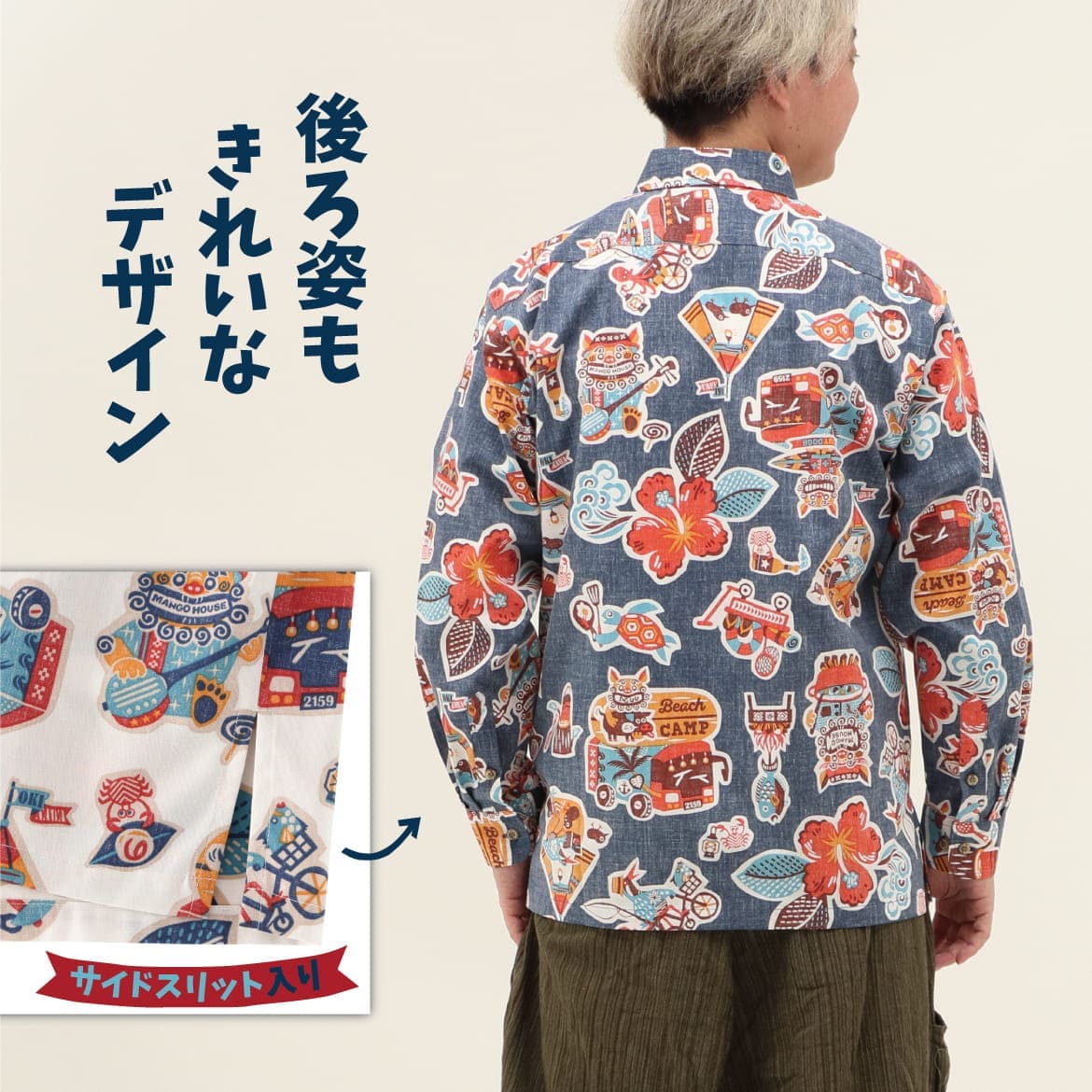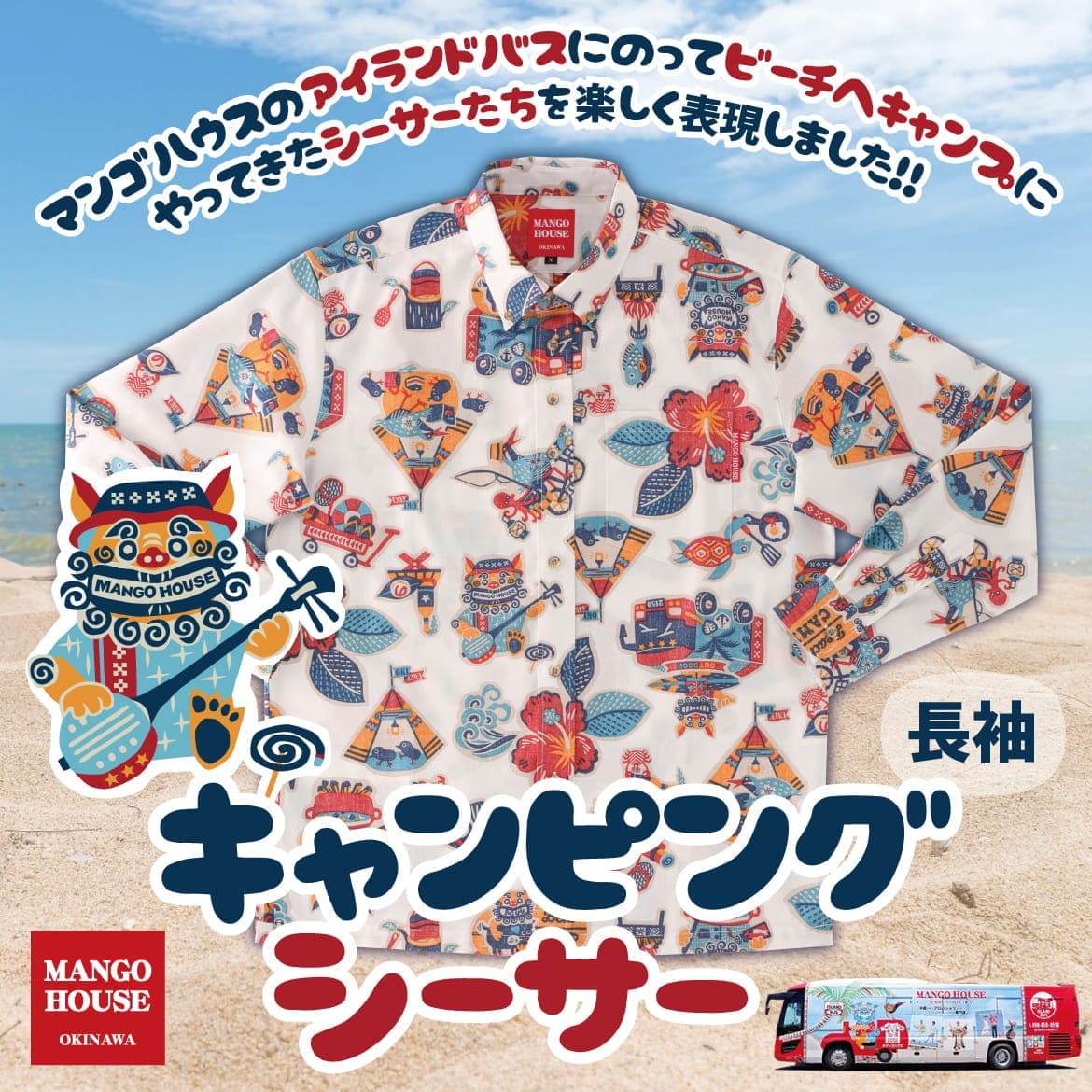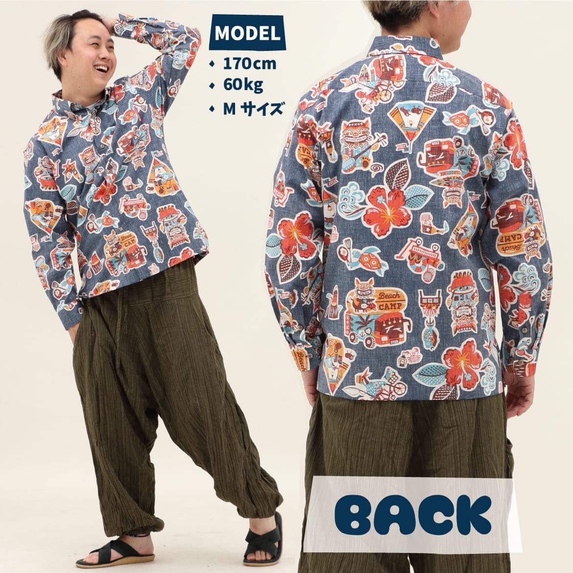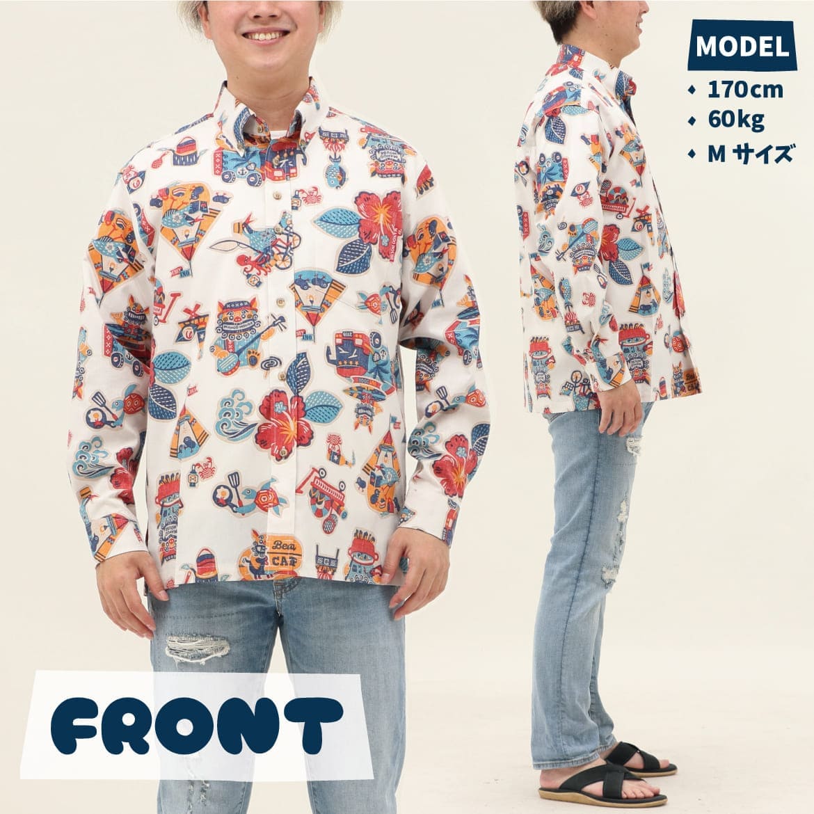 サイズ:S.M.L.LL 長袖シャツ キャンピングシーサー(ボタンダウン) メンズ