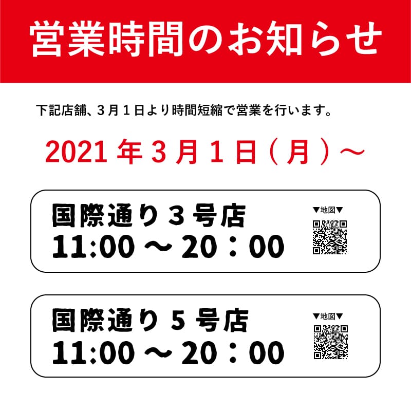 2021.02.26 3月1日より営業再開店舗のお知らせ