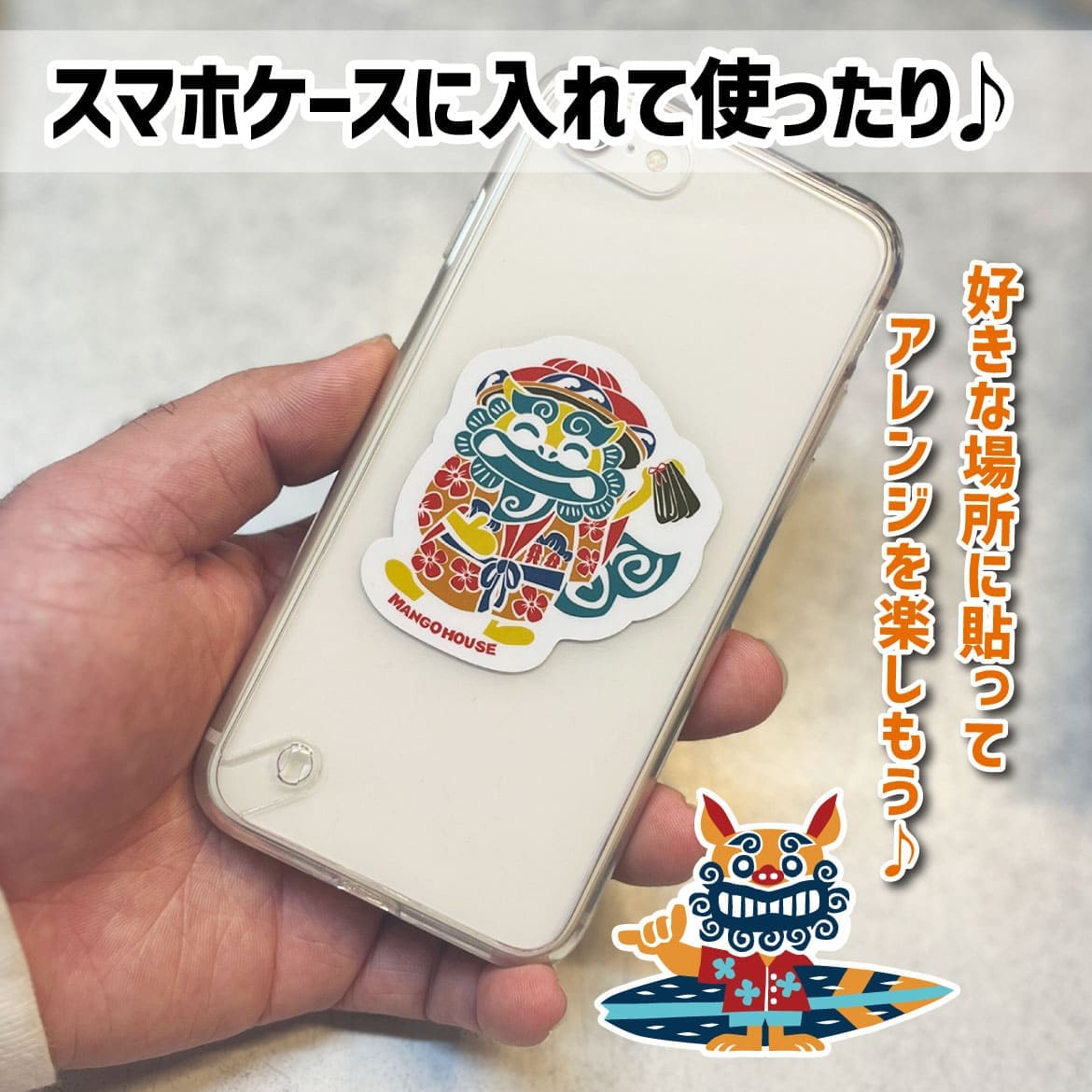 縦:5.6cm 横:5.6cm キャンピングシーサーサーフィン・ミニステッカー