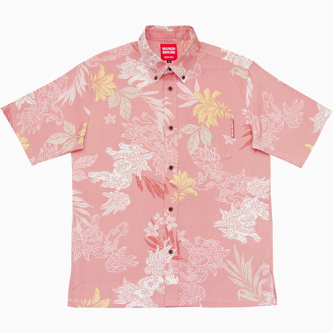 沖縄アロハシャツ メンズ かりゆしウェア ピンクピンク