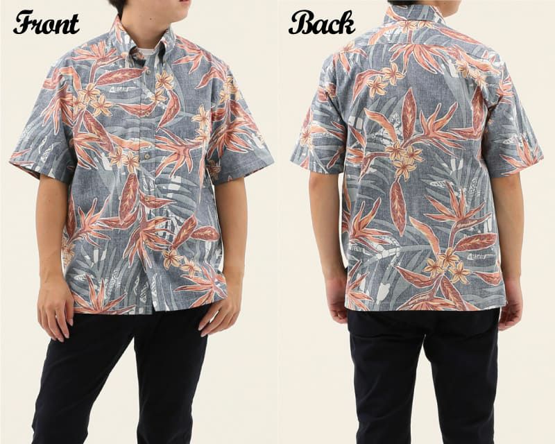 爽やかで遊びゴコロ感じるメンズ沖縄アロハのボタンダウンシャツ 裏地仕様