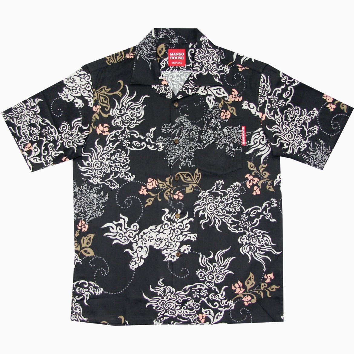 沖縄アロハシャツ メンズ かりゆしウェア ブラックブラック