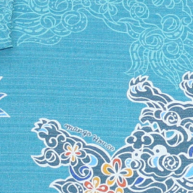めでたい爽やかシーサーアロハシャツ メンズ ライトブルー