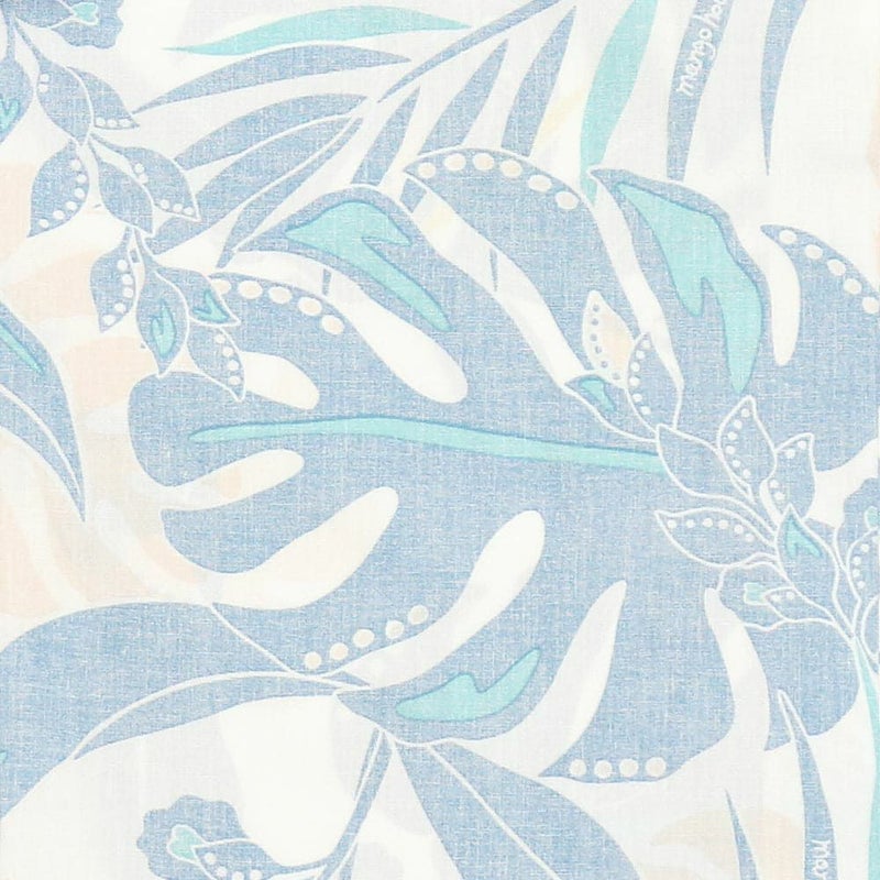 南国の草花の月桃とモンステラを大胆なタッチで表現、隙間風が感じられそうな涼し気な雰囲気が、夏場のカジュアル着として大活躍が間違いなしの一着。