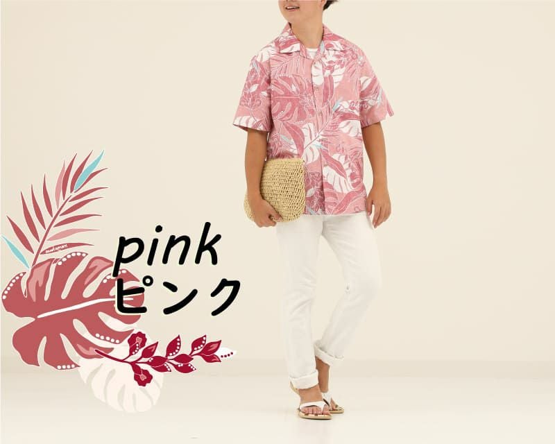 沖縄アロハシャツ メンズ かりゆしウェア ピンクピンク