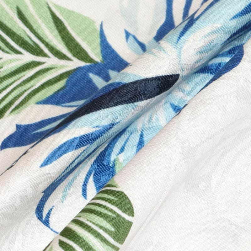 リッチな気分を盛り上げる南国の植物をデザインした、柔らかく光沢のあるジャガード織生地が、大人の優雅な休日をエスコートいたします。綿100%でお肌にも優しい仕上がりです。