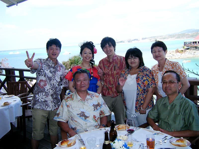 以前、旅行で訪れた沖縄のホテルと景色に感動して、沖縄で結婚式をあげるのが夢でした。挙式当日は親族・友人にお揃いのかりゆしを着てもらい大好評でした。沖縄らしい、素敵な式を挙げることができて幸せです!