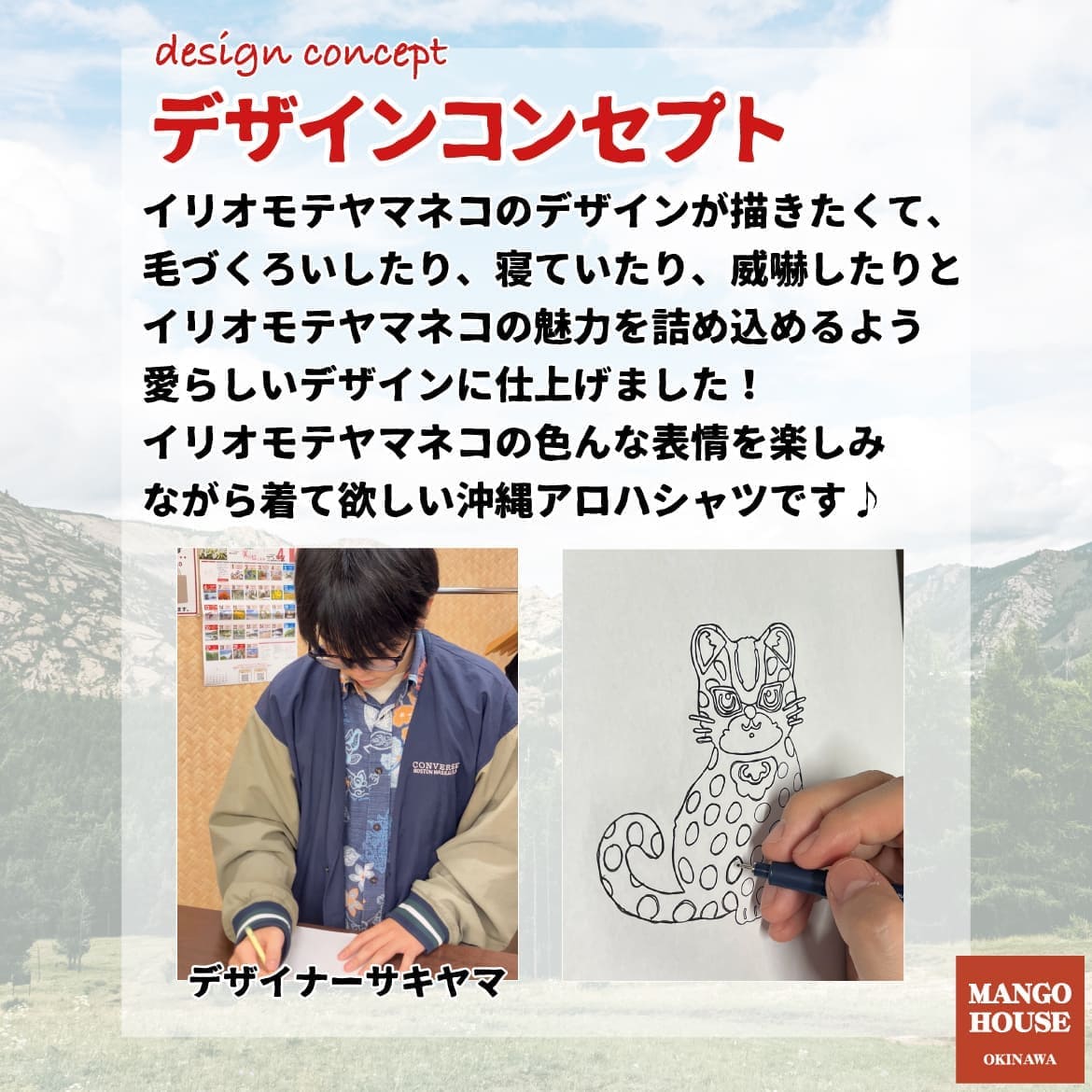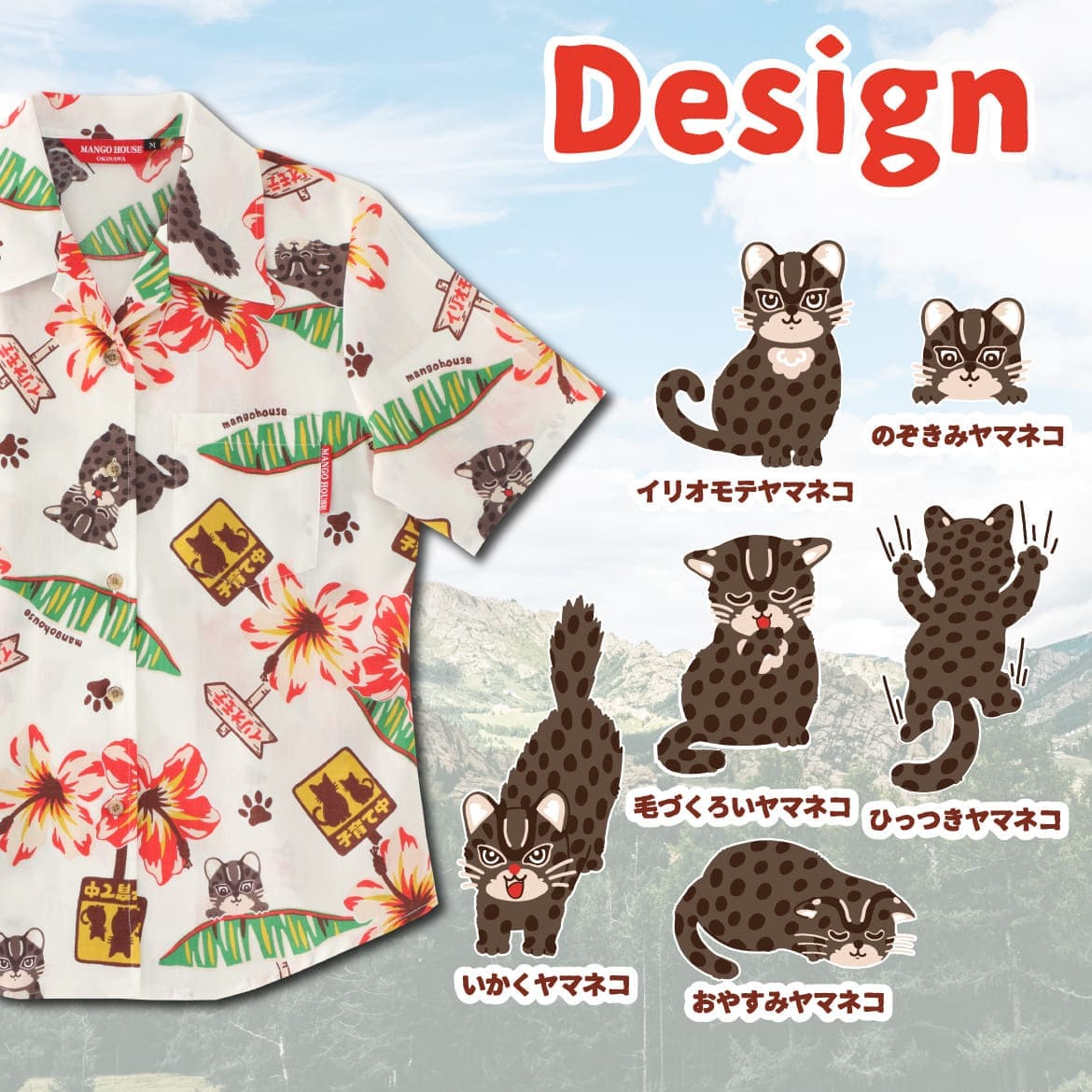 イリオモテヤマネコがみんなの心を癒します♪その愛くるしいフォルムで毛づくろいしたり、寝ていたり、威嚇したりとイリオモテヤマネコの魅力を詰め込んだ、着ているだけで思わず笑顔になる一着です♪