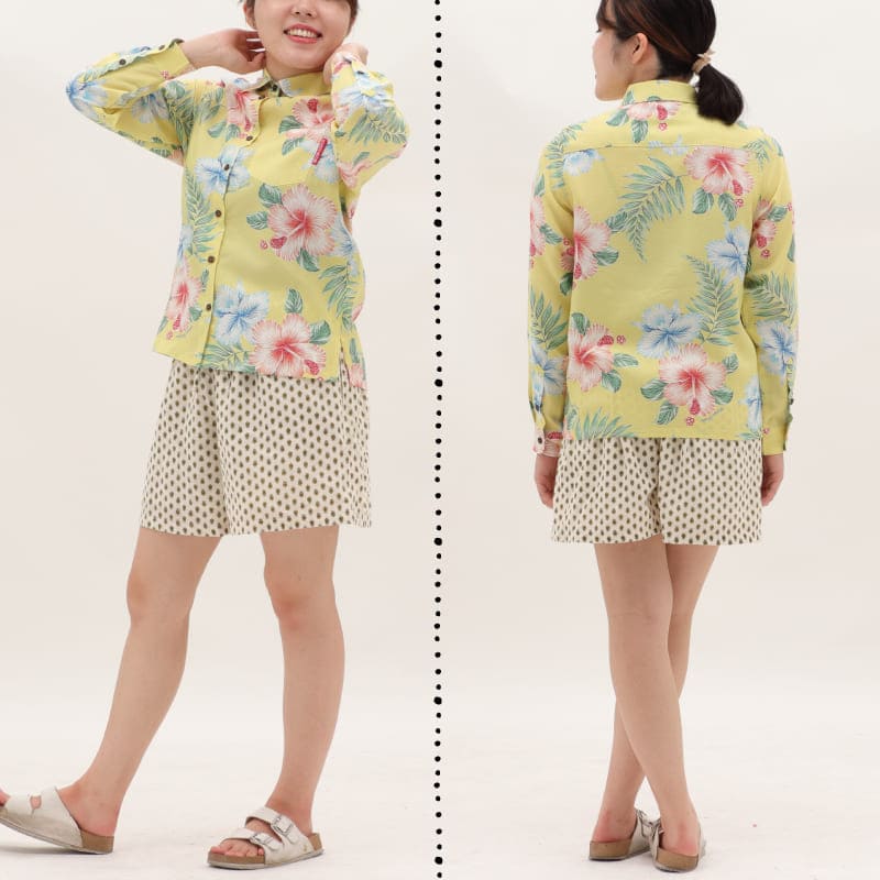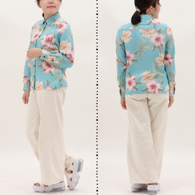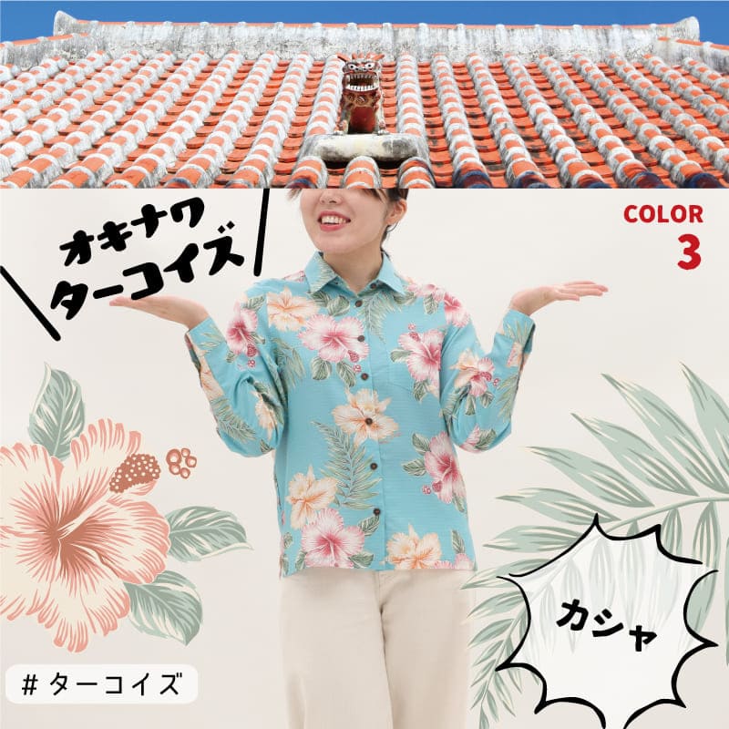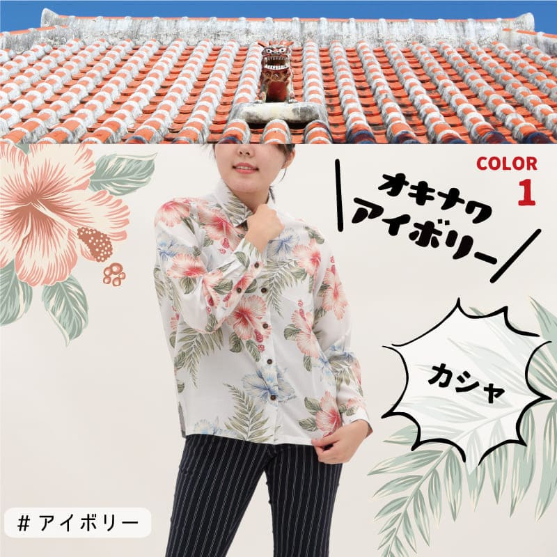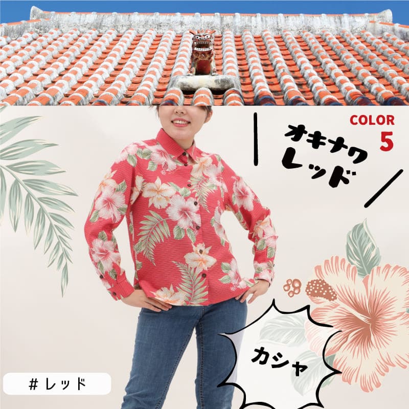 サイズ:S.M.L.LL.3L レディース 長袖シャツ オキナワンハイビー (レギュラーカラー)