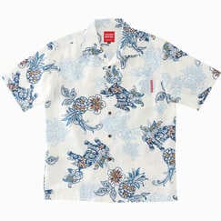 No.1 252074 一番桜ドラゴン (レギュラーカラー) メンズ ドラゴンが沖縄の空へ舞い上がる美しい姿に心躍るデザイン。綿100%生地を使用、生地がしっかりとした着心地です。 12,540円(税込)