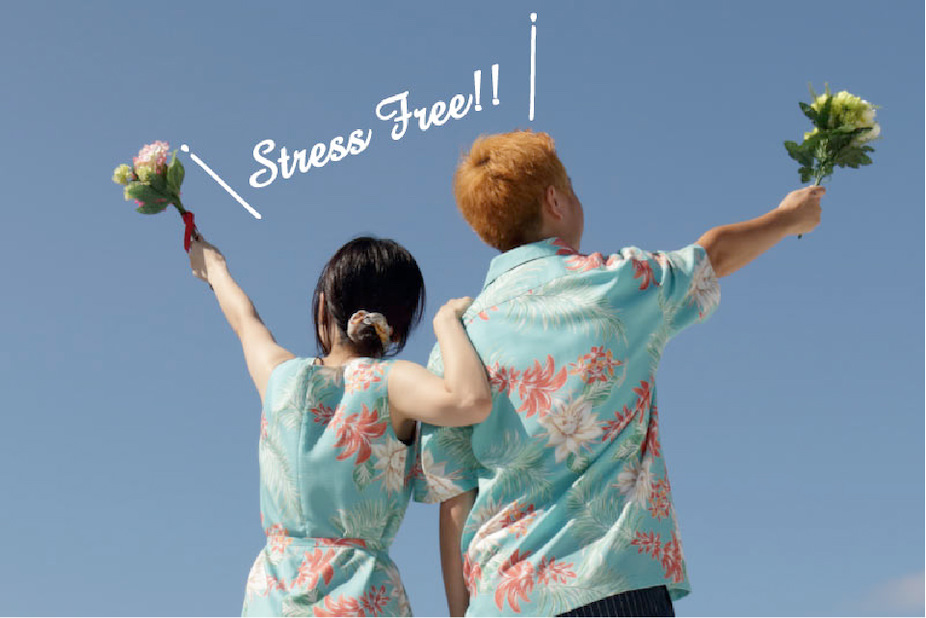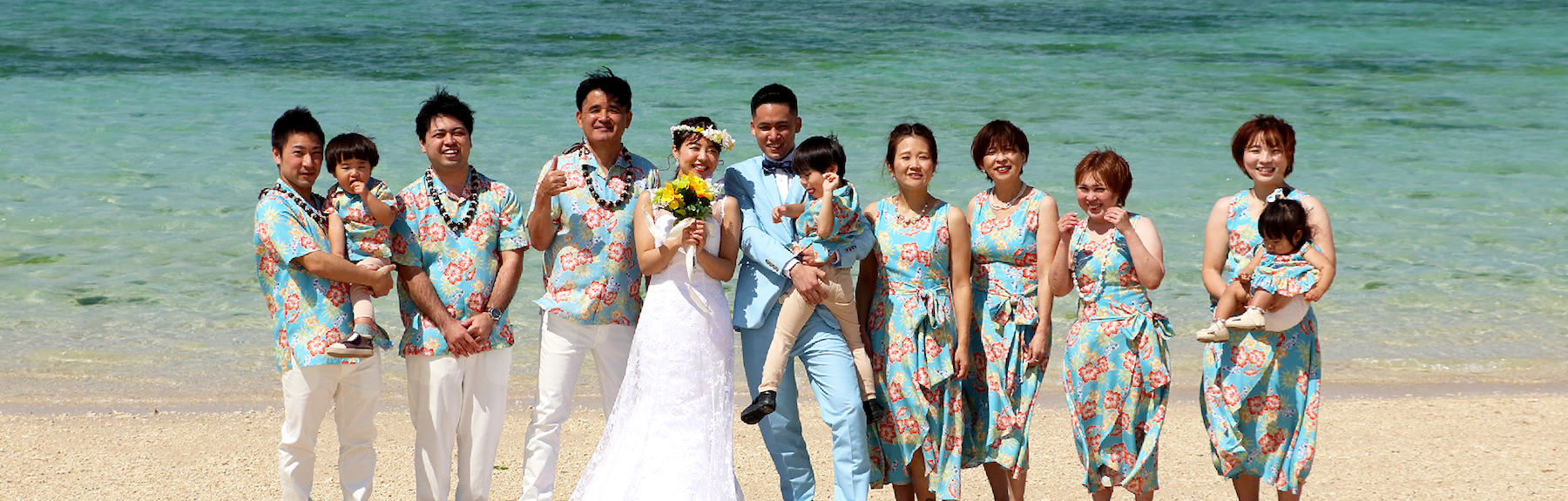 かりゆしウェアとは、沖縄県衣類縫製品工業組合により「沖縄県産であること。」「沖縄らしいデザインであること。」と定義された衣類で、沖縄ウエディングの参列者の方が「かりゆしを」着用することも多く、人気のフォーマルウェアでもあります。