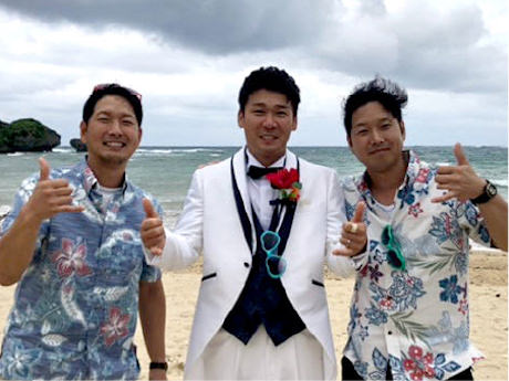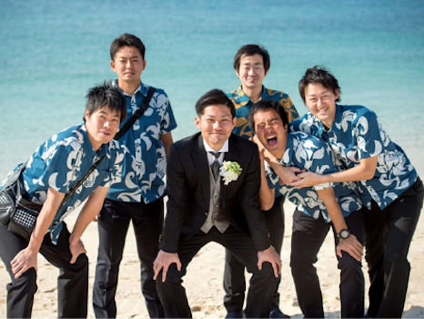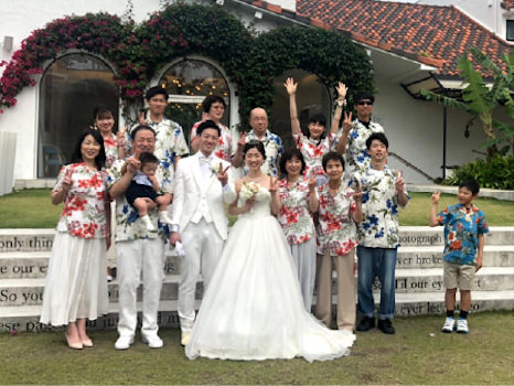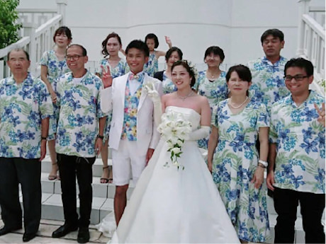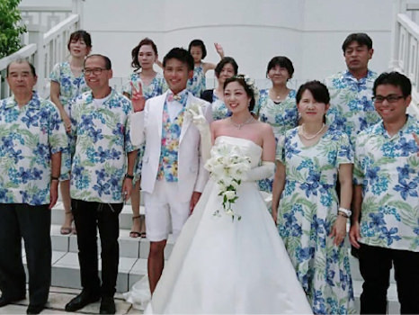 また、沖縄の結婚式は、日本国内でできるリゾートウェディングです。スーツなど堅苦しいフォーマルウェアではなく、沖縄のアロハシャツ(かりゆしウェア)で、リゾートウェディングを満喫してもらうためでもあり、さらに手荷物を少なくするための新郎・新婦様の配慮でもあります。新郎・新婦様にとって、沖縄は特別な地、思い出の地の場合も多いので、ぜひご協力をお願いします♪