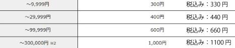 梱包重量 送料 ~ 50 g 以下 ¥ 200 ~ 100 g 以下 ¥ 240 ~ 150 g 以下 ¥ 330 ~ 250 g 以下 ¥ 380 ~ 500 g 以下 ¥ 570 ~ 1,000 g 以下 ¥ 810