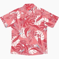 濃い赤の裏地で緑や黄色で模様があしらっていて、目立ち過ぎず、誰でも着こなせる沖縄アロハだと思います。生地もしっかりとして丈夫なのでアウトドアにも着ていけると思うのでおススメです。