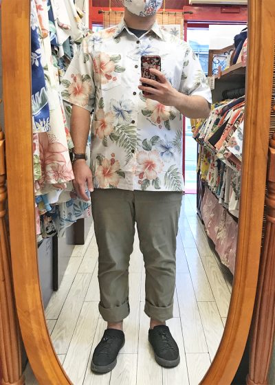 【スタッフコーデ】グリーンのパンツにも合う!沖縄アロハシャツコーデ♪