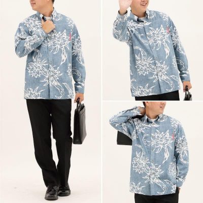最近では、長袖のかりゆしウェアも増えており、マンゴハウスでもメンズはもちろん、