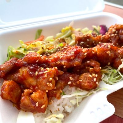 ヤンニョムチキンのオーバーライス♡実は辛いの苦手な当スタッフですが、辛い中にもコクがあって美味しい!サンセットを見ながらハフハフ食べるご飯…よきです♡辛いの好きな方には特にオススメ。