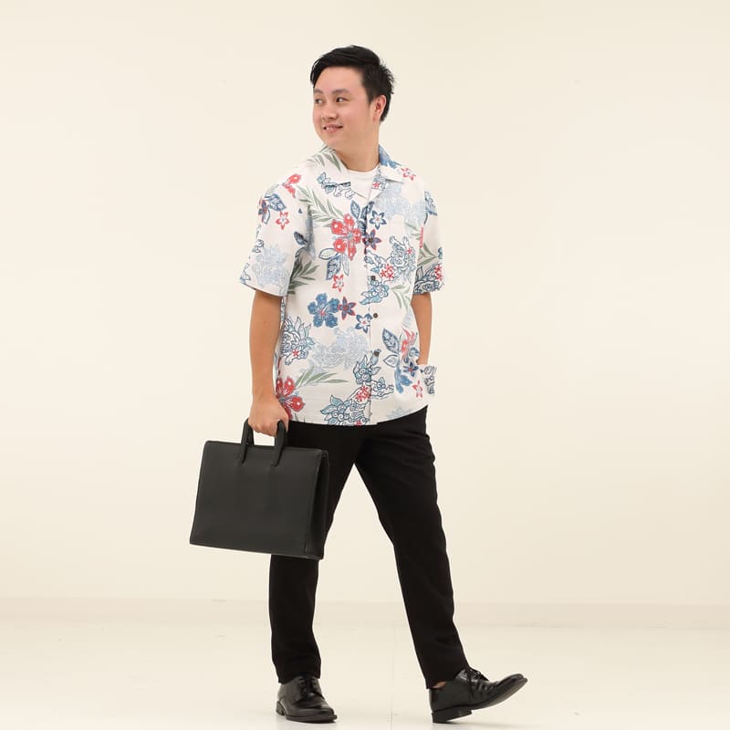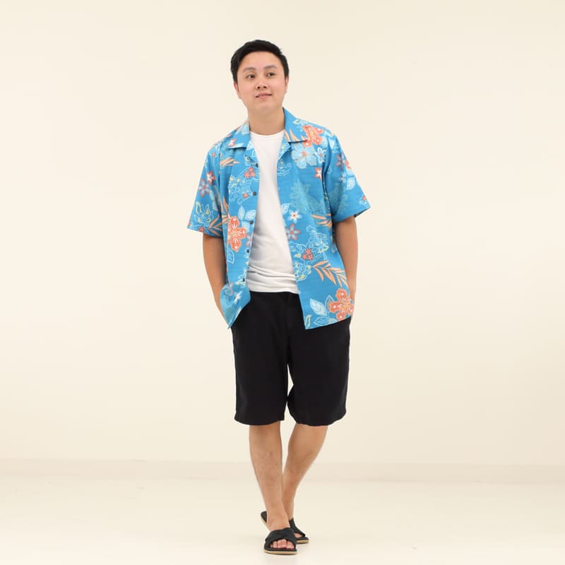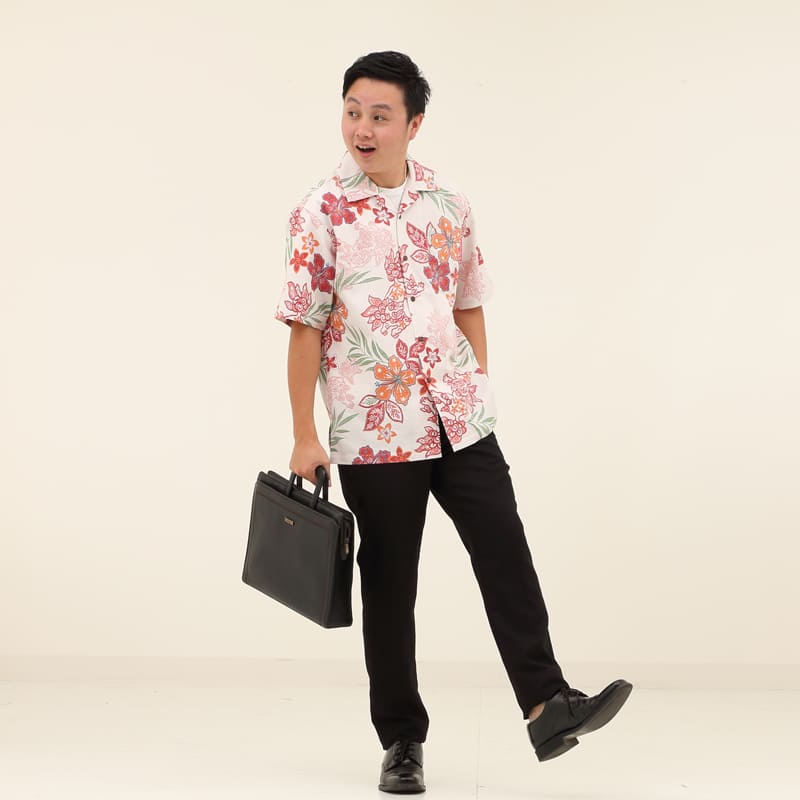 シーサーはカッコよく、ハイビスカスは華やかに彩られたかりゆしウェア!!爽やかなカラーが魅力的