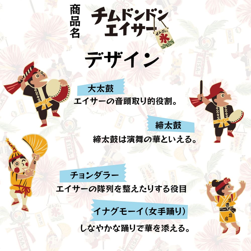 沖縄のお祭りを感じるデザインを描いた『チムドンドンエイサー』