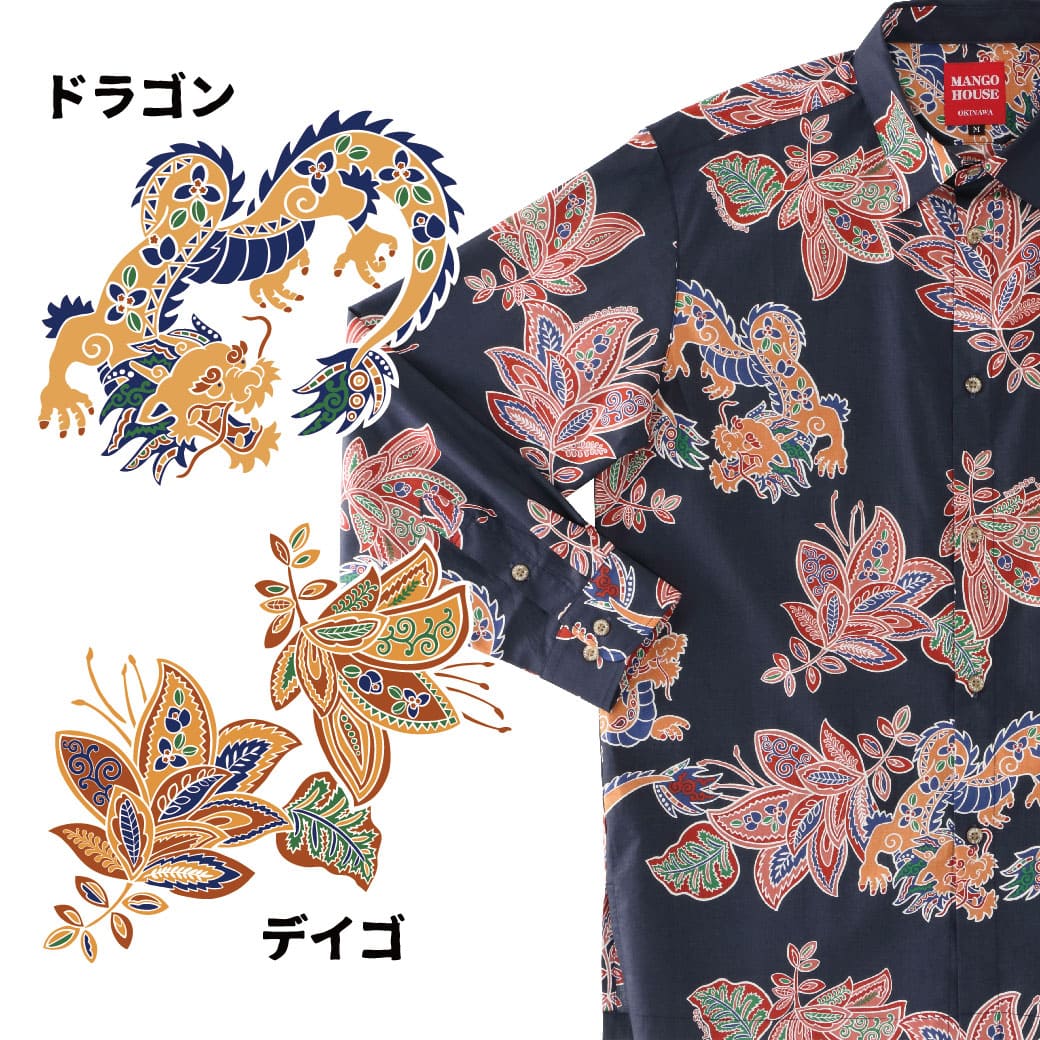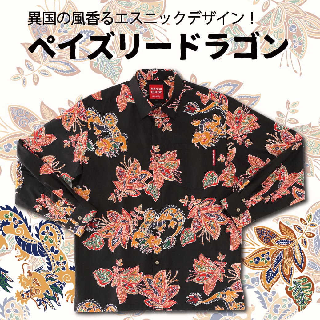 【かりゆしウェア新作商品長袖シャツ】昔懐かしい琉球王国の時代を感じるデザイン『ペイズリードラゴン』