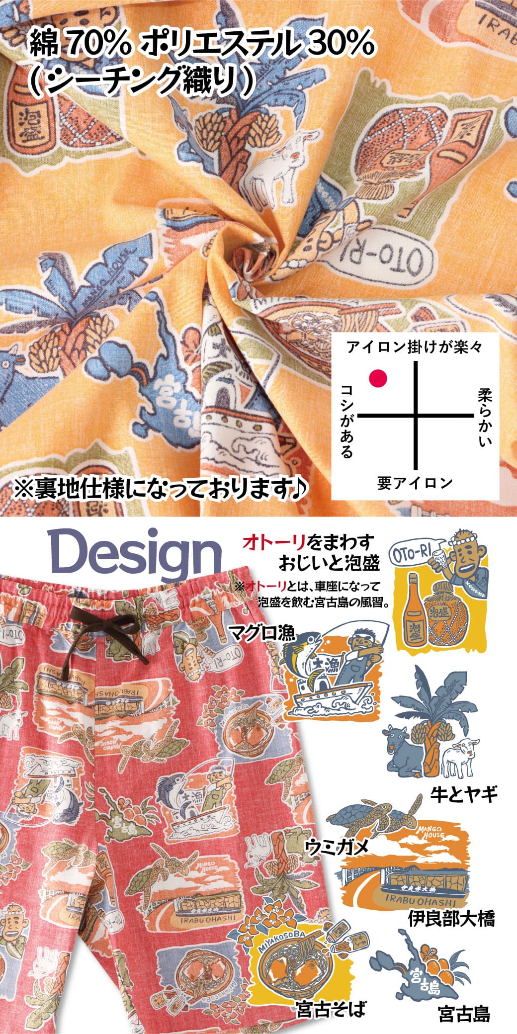 【新作紹介】宮古島がモチーフのハーフパンツ。セットアップでも楽しめマス『宮古島ちゃんぷるー』